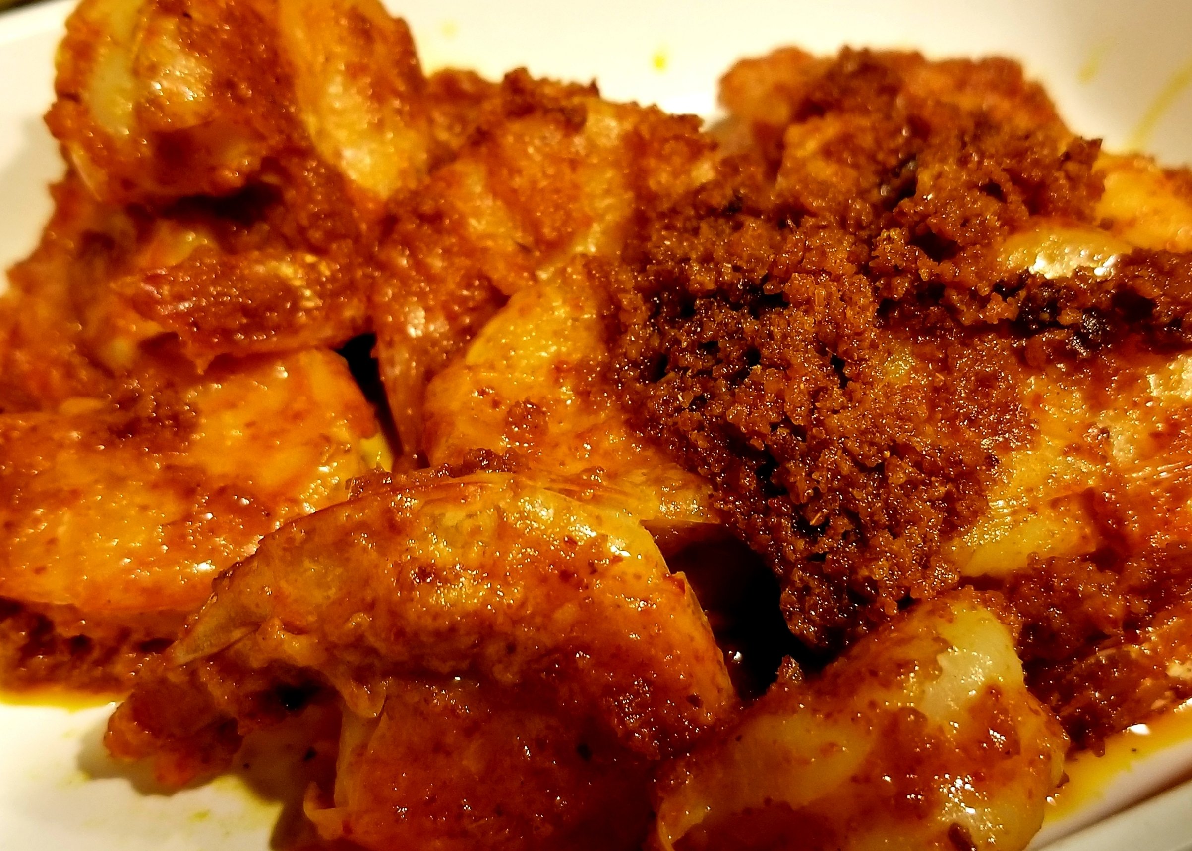 Stage 2 – In a little oil and butter saute the marinated item of choice till well fried and red. Time varies between Prawn, Chicken, Paneer and Mushroom. In general you want to get it red and ready to eat at this stage.