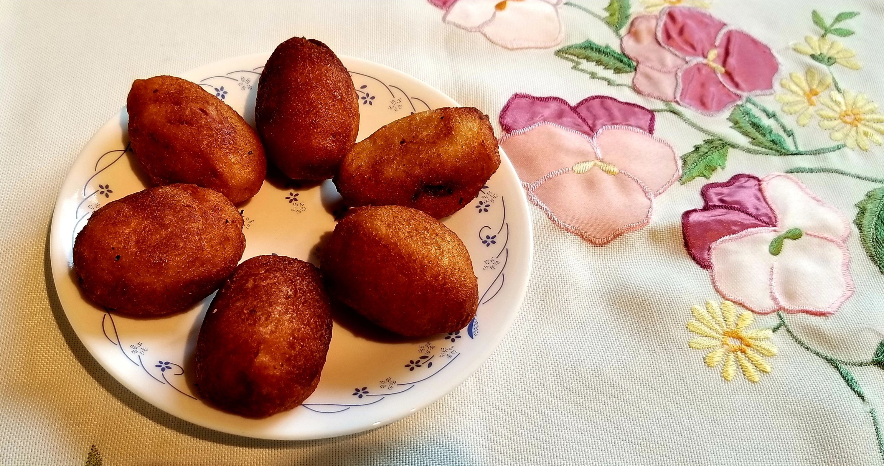 3. From step 1 above – add 1/4th cup flour and teaspoon of baking powder to the mix and knead gently into a dough. Make small round pieces (remember it will become bigger in the process). Also remember to make the round pieces as soon as the dough is done and go to step 4 right away. Perhaps as you make the round keep putting it in the oil.
