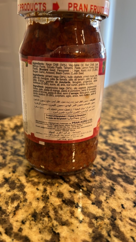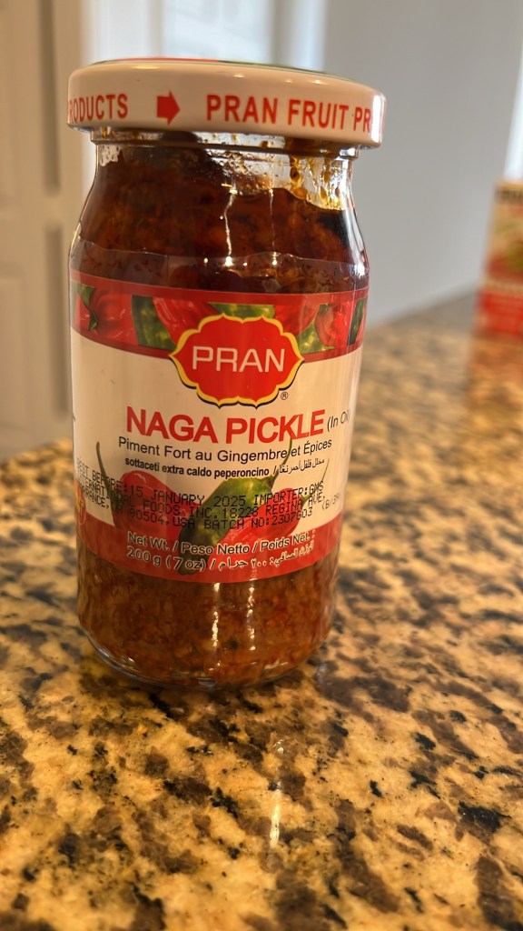 Super super hot, you cannot survive a whiff let alone a taste. Amazing Naga Chilli pickle, always brings tears of joy! Again not for the faint hearted. A speck, a drop at a time is what some can manage.